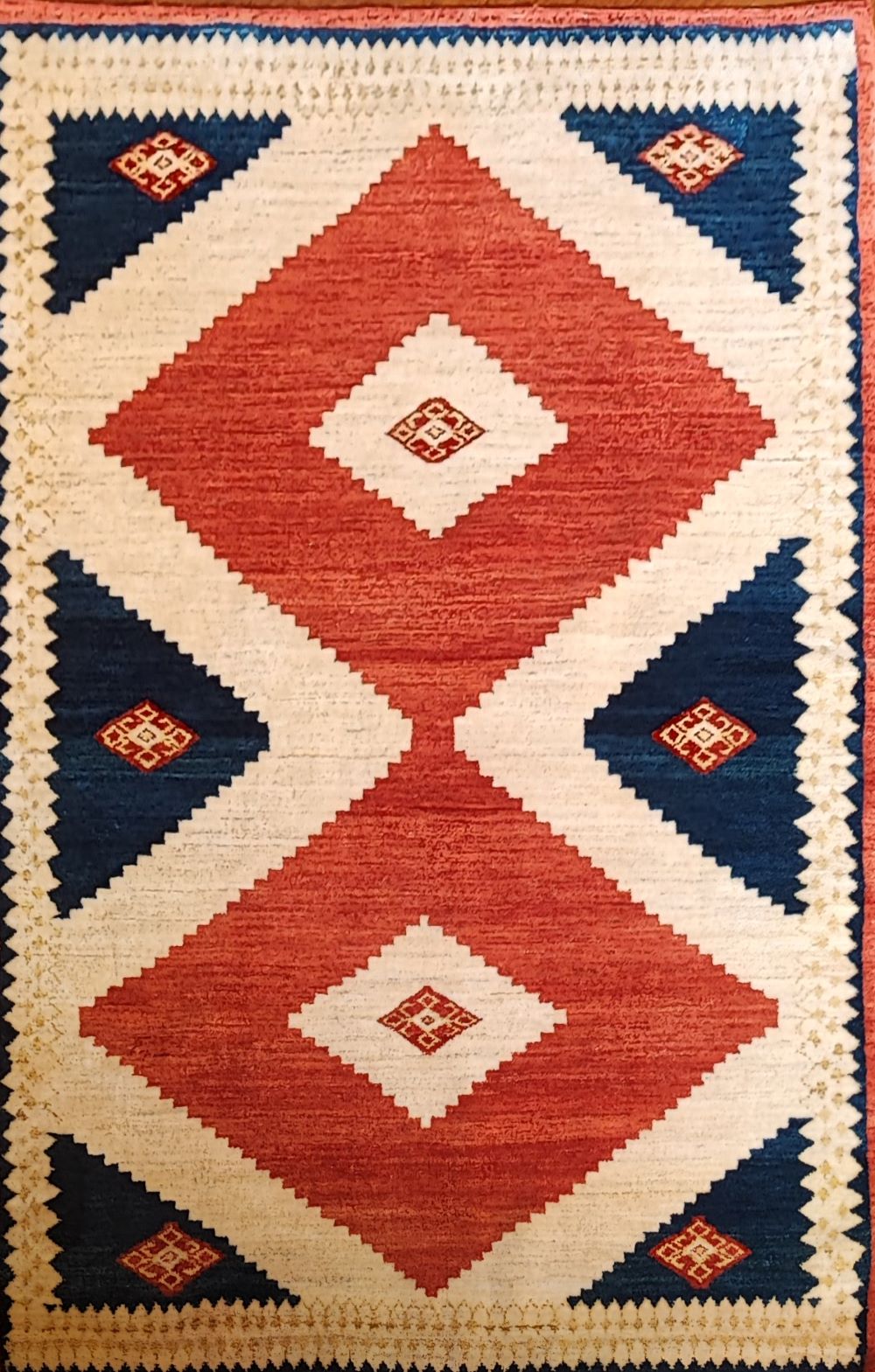 Questo è un tappeto autentico Annodato a Mano in Persia con Lana su una struttura (trama e ordito) di Cotone.